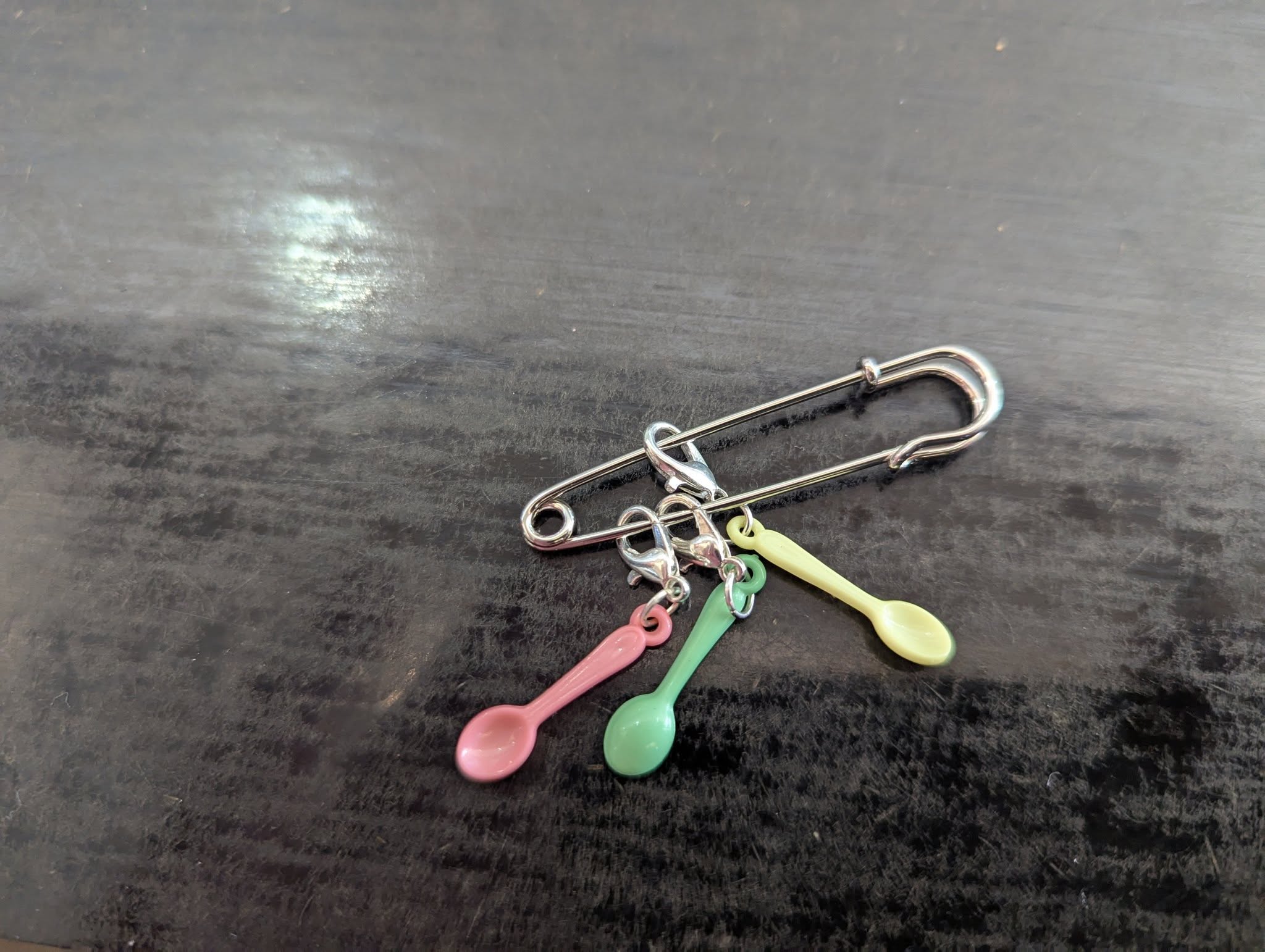 These spoons are stitch markers used as a guideline when you're knitting, so that they don't fall out of alignment. They let you keep track of how far along a row you are.